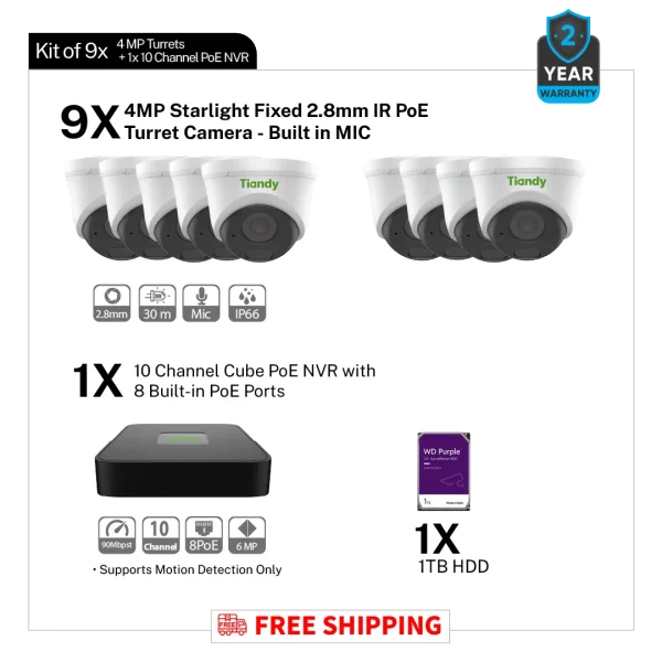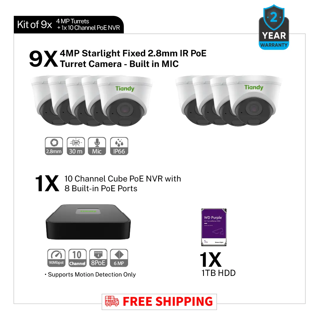 Kit of 9*4MP Turret + 1*10 channel PoE NVR
