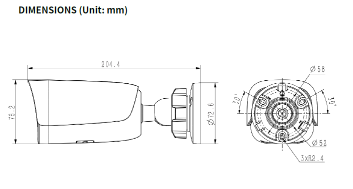- Smart IR Technology: The camera utilizes Smart IR technology for enhanced night vision capabilities. This intelligent system automatically adjusts the IR LED intensity based on the scene, preventing image washout and ensuring optimal visibility in varying lighting conditions.